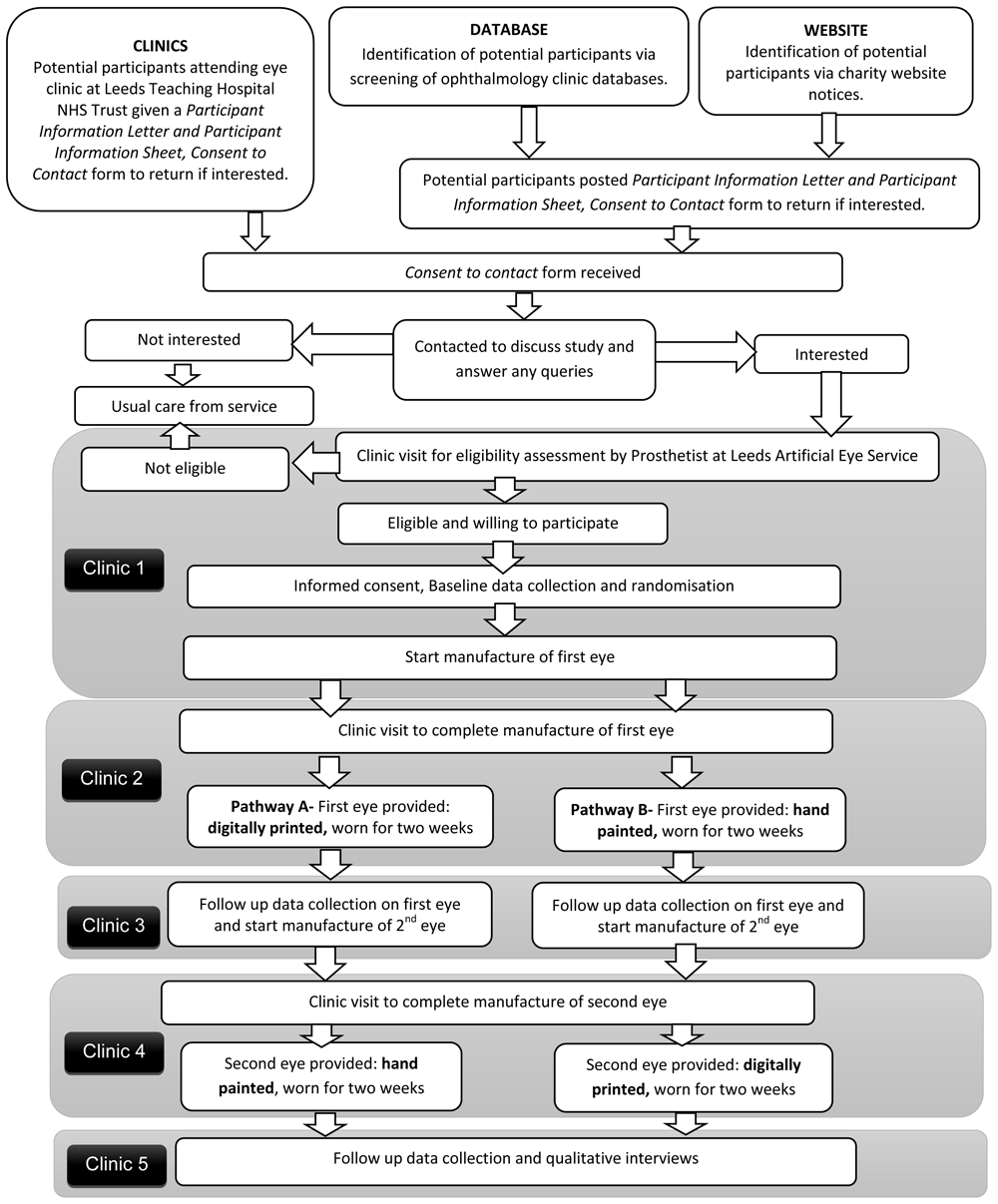 A cross-over, randomised feasibility study evaluating a digitally-printed artificial eye with a hand-painted eye, in patients aged ≥18 years with a current artificial eye. Participants will be identified in clinic, via ophthalmology clinic databases and two charity websites. Qualitative interviews will be conducted in the later phases of the study and focus on opinions on trial procedures, the different artificial eyes, delivery times, and patient satisfaction.
