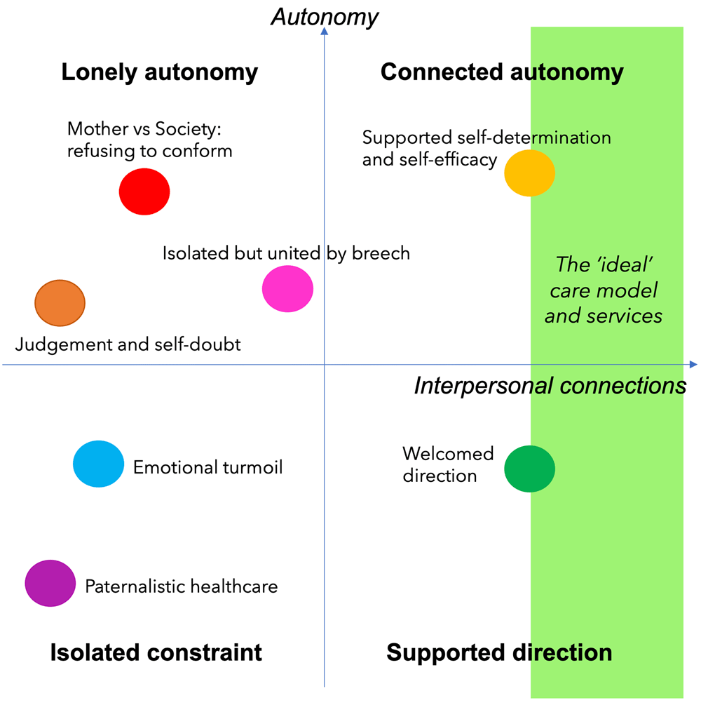 In the ‘isolated constraint’ quadrant of our schematic, women’s experiences were characterised by disconnection from their healthcare providers and little ability to make autonomous decisions about mode of birth.