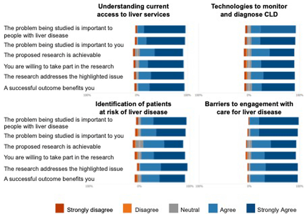 Respondents were asked the same set of questions for each workstream and were asked to rate their responses using a Likert scale. The results outlined in Figure 1 demonstrate that the respondents were generally positive about all workstreams. Furthermore, specific comments from respondents helped us refine the project proposals to ensure that all opinions were considered.