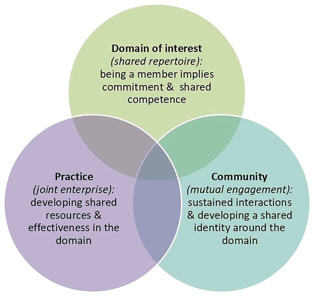 Over time, Wenger and colleagues defined a COP as a set of people who “share a concern, a set of problems, or a passion about a topic, who deepen their knowledge and expertise in this area by interacting on an ongoing basis” (Wenger et al., 2002). Wenger (1998) suggests that COPs have an inherent predisposition to deepen learning in a professional context, enabling learning to be embedded into the goals of an organisation. Wenger (1998) argued that COPs are an organisation’s assets, aimed at generating knowledge and being hard-wired into the fabric of an organisation, despite not being formal entities in themselves. The renaissance of COPs over the last 15 years, as a way for improving organisational performance, is apparent in areas including healthcare (Ranmuthugala et al., 2011), nursing (Gullick & West, 2016), social work (Gray et al., 2010) and academic-practice partnerships (Padilla & Kreider, 2020).