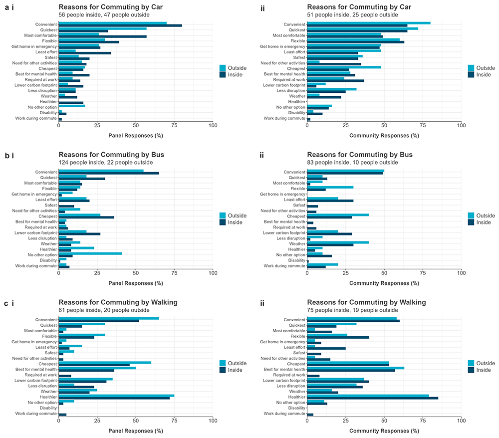 There are numerous considerations for travel choices, including personal, socioeconomic, infrastructure and others (Dingil et al., 2021). A survey following LEZ implementation in Madrid found the most common reasons for transport choice were comfort, travel time, cost (Tarriño-Ortiz et al., 2022). These were also important motivations for travel mode in our survey, as well as the healthier option for non-motorised travel.