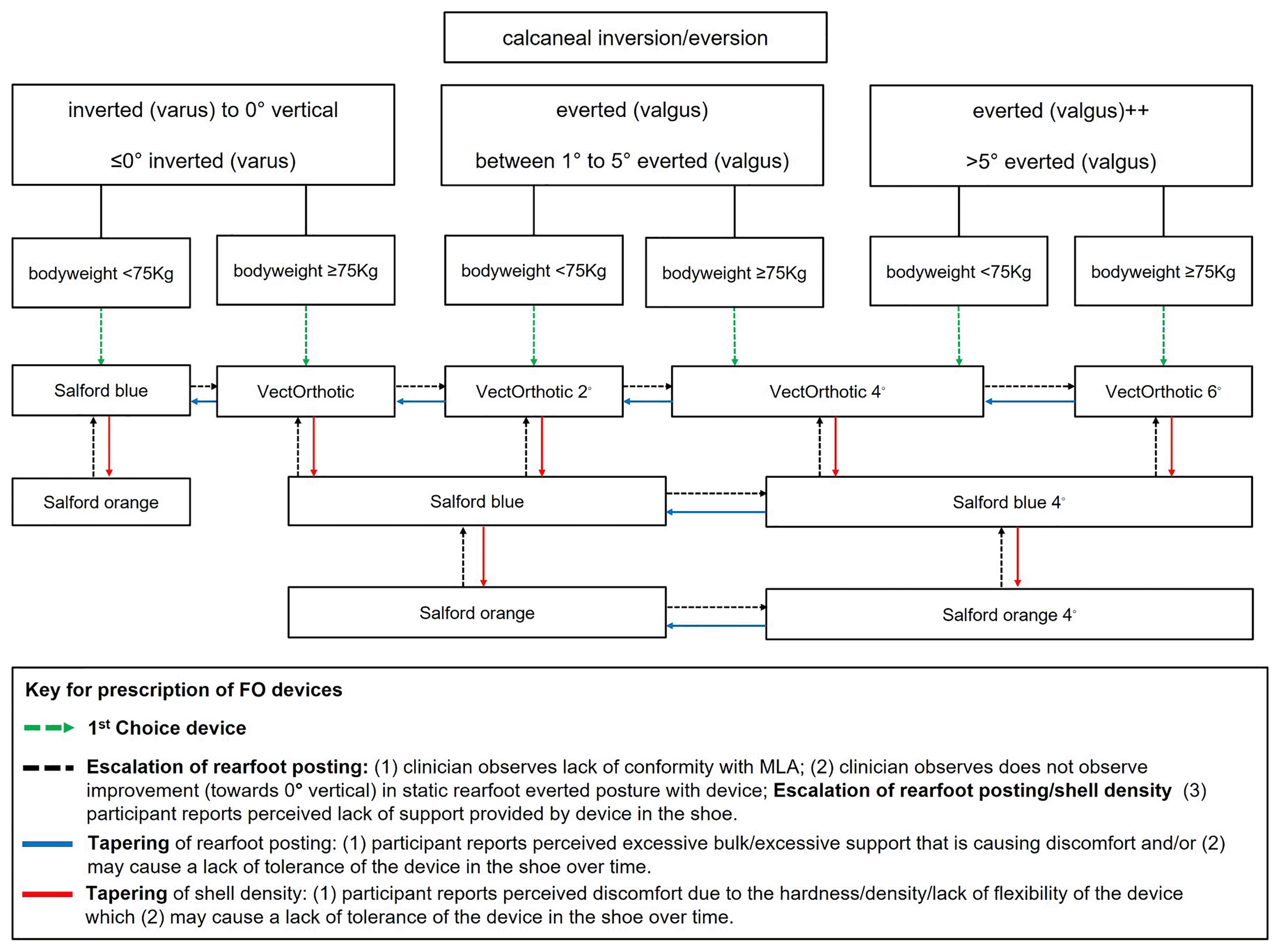 As a result, we developed a pragmatic foot orthosis intervention algorithm, which includes the following devices: