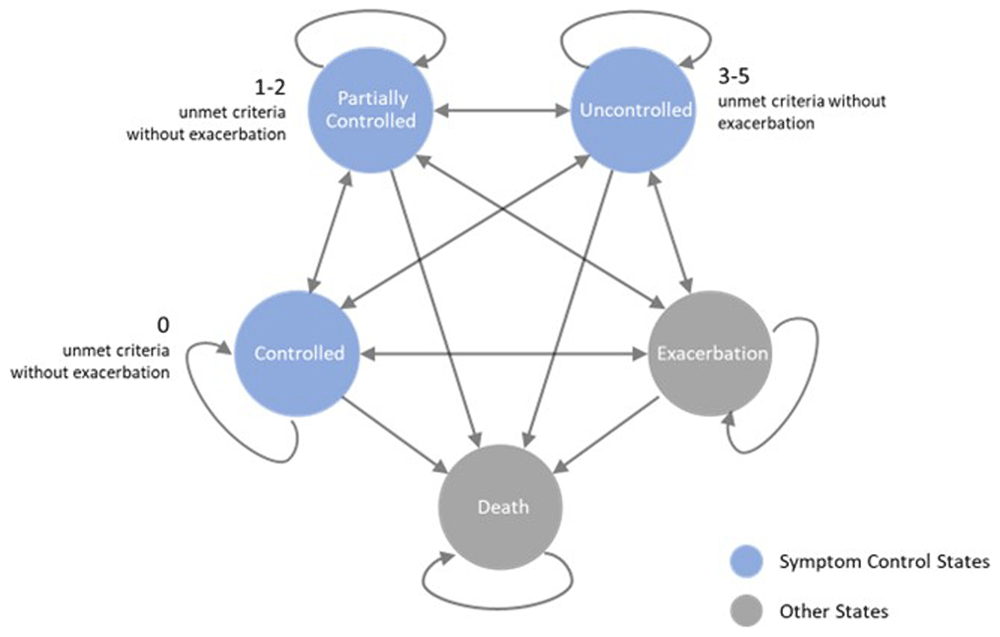 Figure 1: Schematic representation of the modified Asthma Markov Model