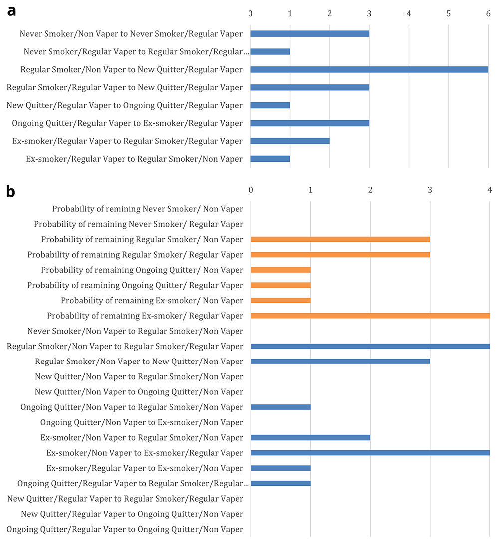 c) What is the evidence for social or individual behavioural influences on the transitions between vaping behaviours?
