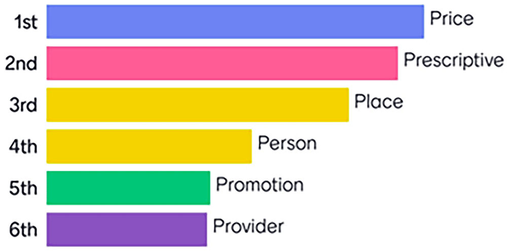 Following this a second round of voting took place and the top three policies with the highest ranking were Price, Prescriptive (including Product), and Place (Table 1 and Figure 2). These were considered the priority policy themes throughout the remainder of this work.
