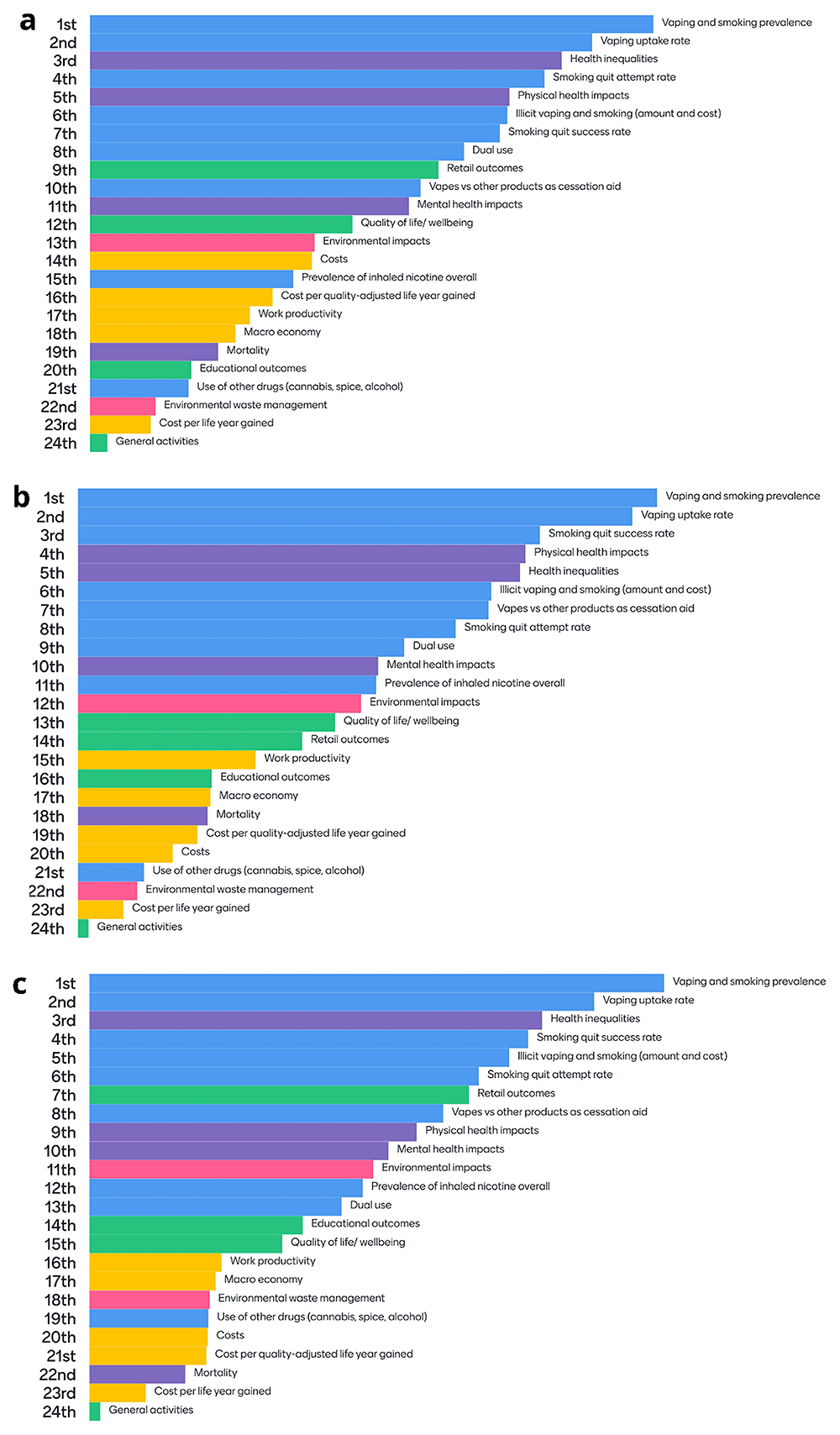 Previous work has been undertaken to identify UK research priorities for vapes7,8; however, this has not had a focus on data availability and how to model possible policy impacts.